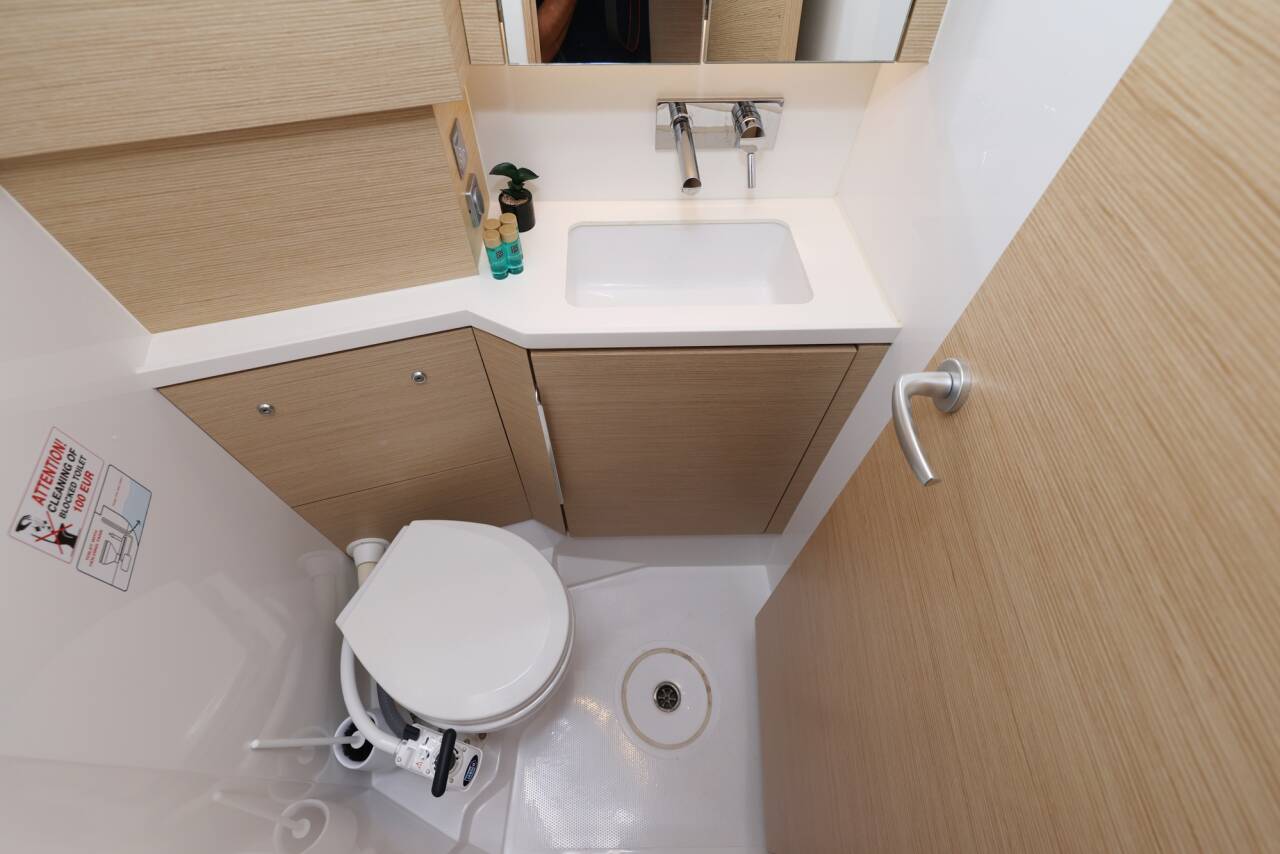 C4: Head with separate shower stall and dayhead door on port and cabin with double bunkbed on stb (only with B3 layout)
