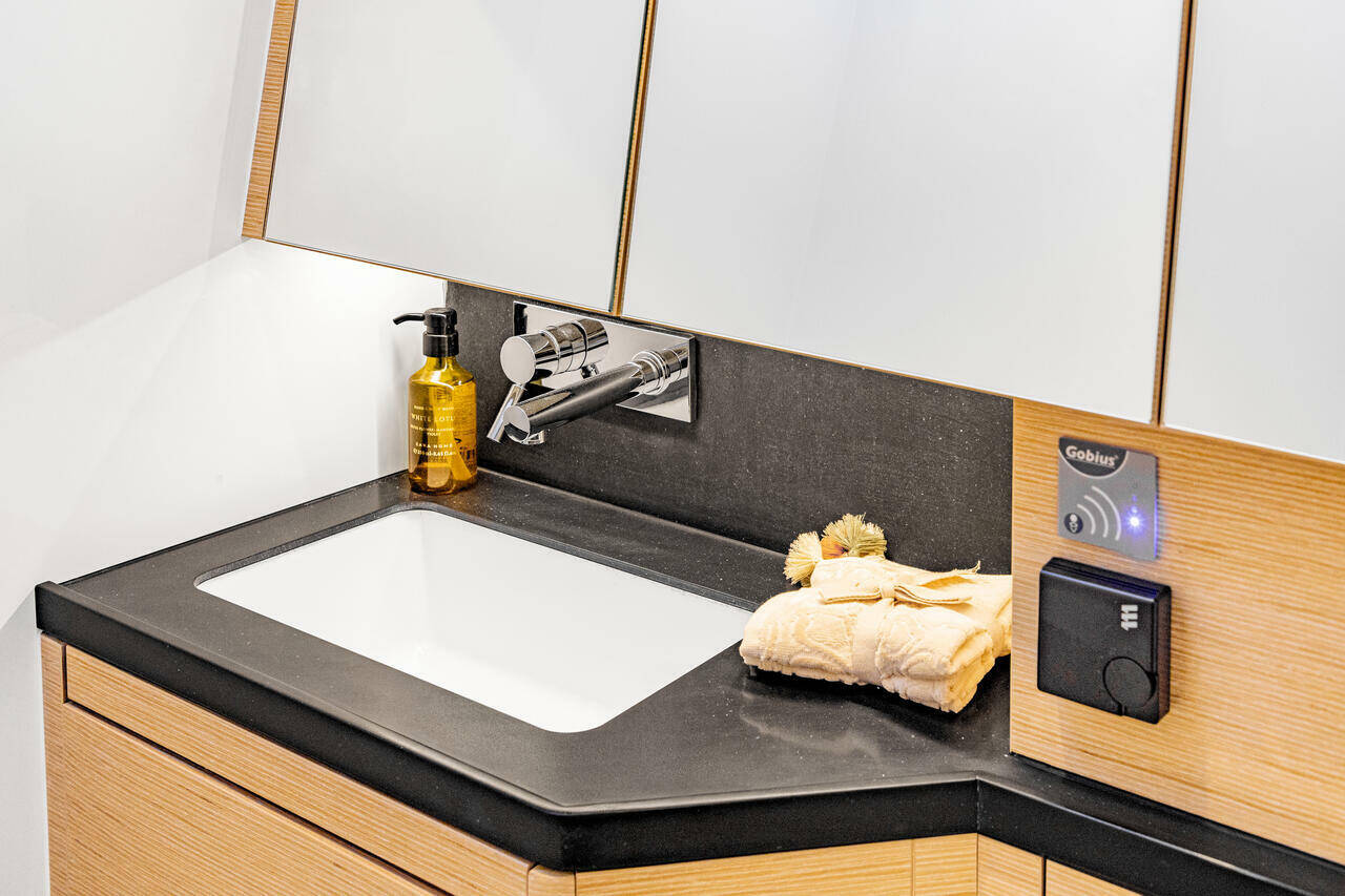 Worktop and sink of the galley in Marine Mineral Stone (colour selection)