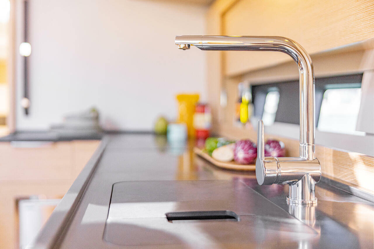 Worktop and sink of the galley in Marine Mineral Stone (colour selection)