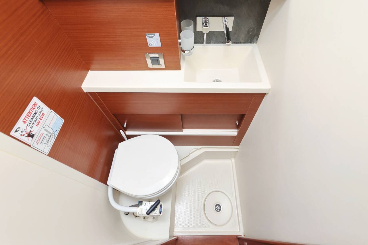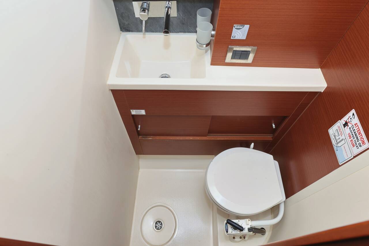 B3: 2 fwd cabins with double berth, storage space and separate head - convertible by a removable bulkhead into a single cabin